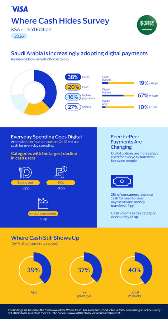 Digital payments are continuing to reshape consumer behaviour in Saudi Arabia, with cash playing a shrinking role in everyday transactions, according to new research from Visa.